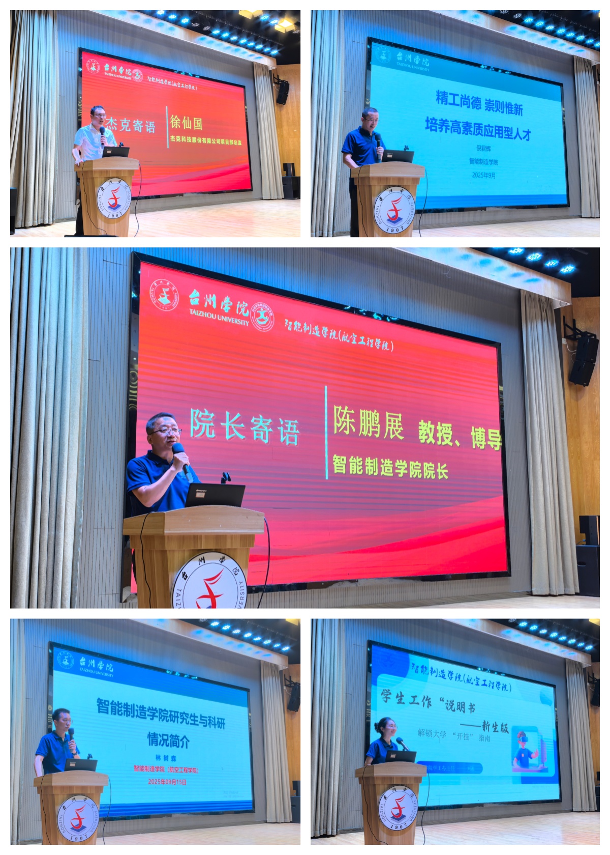 9月15日,学院党委书记李友富以纪念中国人民抗日战争暨世界反法西斯战争胜利80周年阅兵式为切入点,为同学们讲授开学第一课。他介绍浙江、台州、太阳成tyc7111cc及智能制造太阳概况,阐释打造“最关爱学生的大学”办学理念,课上他还深入阐释了马克思主义宗教观的核心要义,学习了相关宗教政策;着重强调宗教法律法规的“红线”与“底线”,帮助新生们系好大学生涯的“第一粒扣子”。