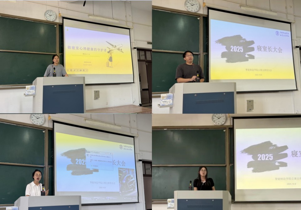 10月9日至12日 ,分专业组织召开 2025 级新生年级大会。2025级辅导员赵远哲和智能制造专业辅导员黄洛佳向新生介绍学院早晚自习实施方案,围绕日常管理关键环节,再次细致解读钉钉打卡“日报告”制度、课堂考勤及席卡管理制度,并针对学生公寓安全管理,重点讲解规范电器使用的相关文件要求。带领全体新生深入学习《本科生学生手册》,全面掌握学校规章制度、毕业标准、评奖评优政策及教学安排。