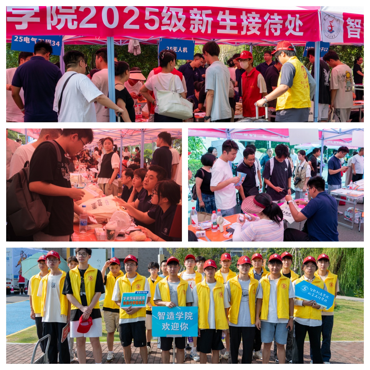 9月13日,学院积极招募志愿者组建服务队伍,志愿者身着黄色马甲穿梭校园,为新生提供行李搬运、流程指引、问题解答等服务;学生党支部迅速响应,组建党员先锋队协助班助、班主任接待新生,以热情与实干为新生提供全方位保障。
