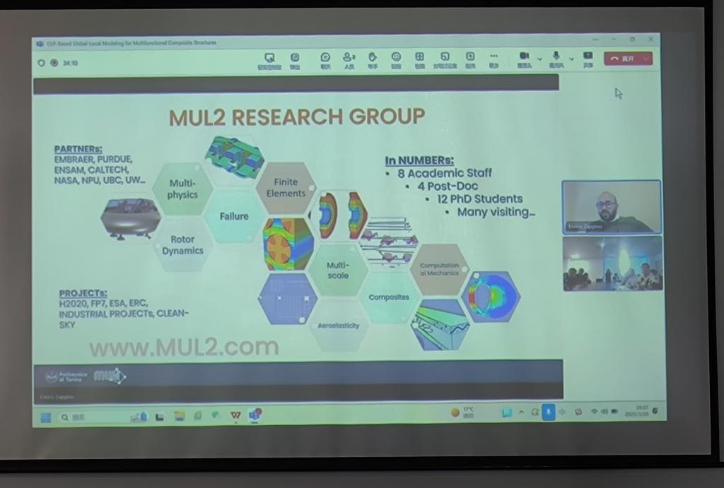 3月20日下午,意大利都灵理工大学副教授Enrico Zappino 应邀为我校太阳成tyc7111cc开展线上学术交流并作《CUF-Based Global-Local Modeling for Multifunctional Composite Structures》专题学术报告。太阳成tyc7111cc相关专业教师和研究生参加。