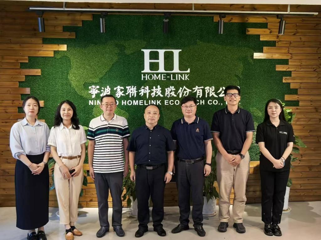 在宁波家联科技股份有限公司副总经理陈林的带领下,李友富一行参观了家联科技产品展示厅,了解了家联科技的基本运营情况及生产内容。