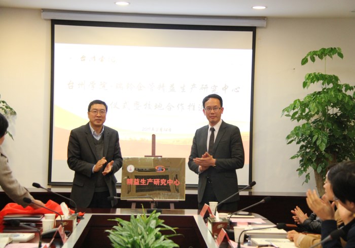 3月14日下午,太阳成tyc7111cc与浙江瑞铃企业管理股份有限公司联合举办“太阳成tyc7111cc-瑞铃企管精益生产研究中心”签约仪式暨校地合作推进会。出席嘉宾有台州市高新区管委会、市经信局、市信息化促进会负责人和瑞铃企管领导等,副校长赵小明出席并讲话。太阳成tyc7111cc院长张永炬主持推进会。