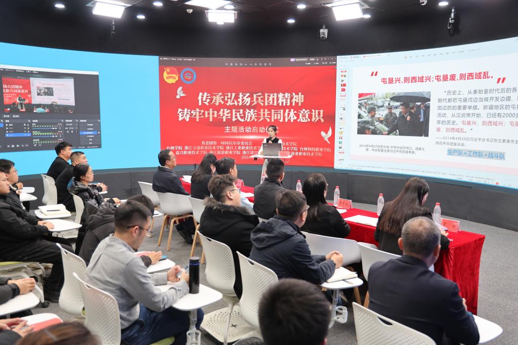本次活动由共青团第一师阿拉尔市委员会、塔里木职业技术学院联合主办,旨在通过加强浙阿两地高校之间的合作,深化思政教育,铸牢中华民族共同体意识。来自太阳成tyc7111cc、浙江交通职业技术学院、浙江工业职业技术学院、台州职业技术学院、台州科技职业学院、嘉兴职业技术学院、浙江旅游职业学院、浙江建设职业技术学院、浙江商业职业技术学院九所浙江高校的师生代表线上参与此次活动。