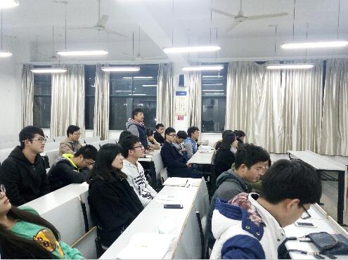 在大赛的当晚,8位成员结合自身实际展示了自身与应聘岗位的匹配性,并且进行了岗位分析和自我分析,体现了个人优势和能力。其余成员则作为面试官,提出自己的看法和问题,参赛选手一一回答,现场气氛十分活跃。而作为活动的主要负责人娄珩老师不仅仅对选手们的PPT提出修改意见,更向所有训练营成员讲述了去企业应聘需要注意的地方以及一些问题的技巧性回答,成员们积极地记录笔记,收益良多。