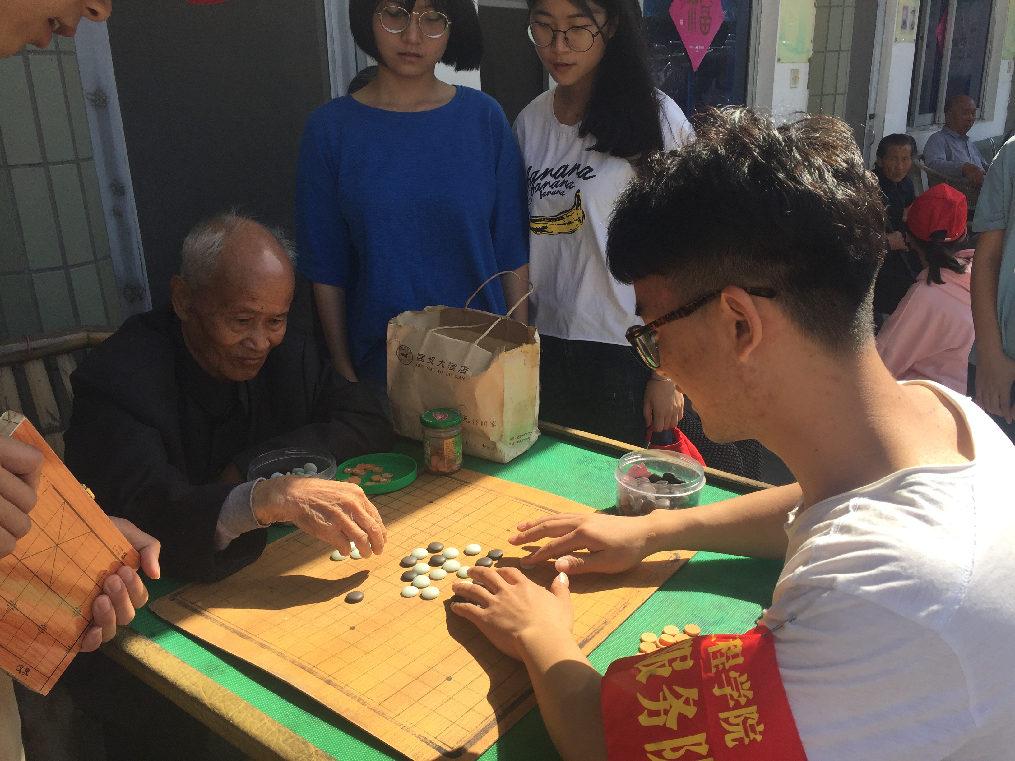 上午八时,学院志愿者在辅导员钟理韬老师带领下,带着水果、零食等早早来到白云山敬老院。有的热情地和老爷爷老奶奶们促膝谈心,有的则陪老人们对弈起围棋、象棋、五子棋等,有的向每位老爷爷老奶奶送去精心准备的慰问品。志愿者们用自己的实际行动让老人们感受到了社会大家庭的温暖。