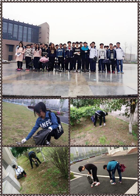 活动共分为六组。各组在负责人带领下,对校园草坪、道路及各个角落进行清理。活动中,每位同学都尽职尽责,不敢落下每一个角落,各组圆满完成工作任务。不怕脏、不怕累的品质,在活动中充分表现出来。看着无垃圾、无污染的校园,每个同学脸上都露出自豪的笑容。