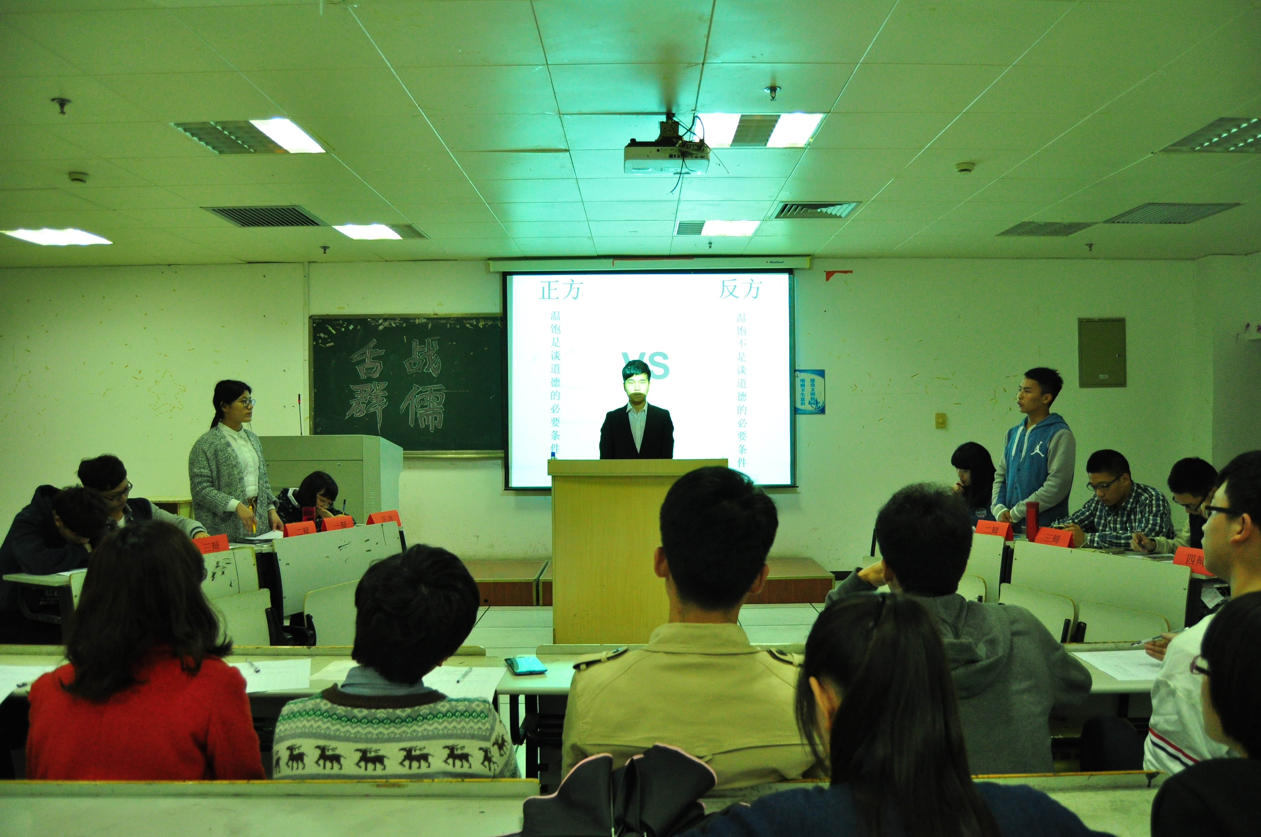 4月18日晚,机械工程学院在1-208教室举行了辩论赛决赛,学院辅导员、团学会主席团以及班级同学参加本次辩论赛。