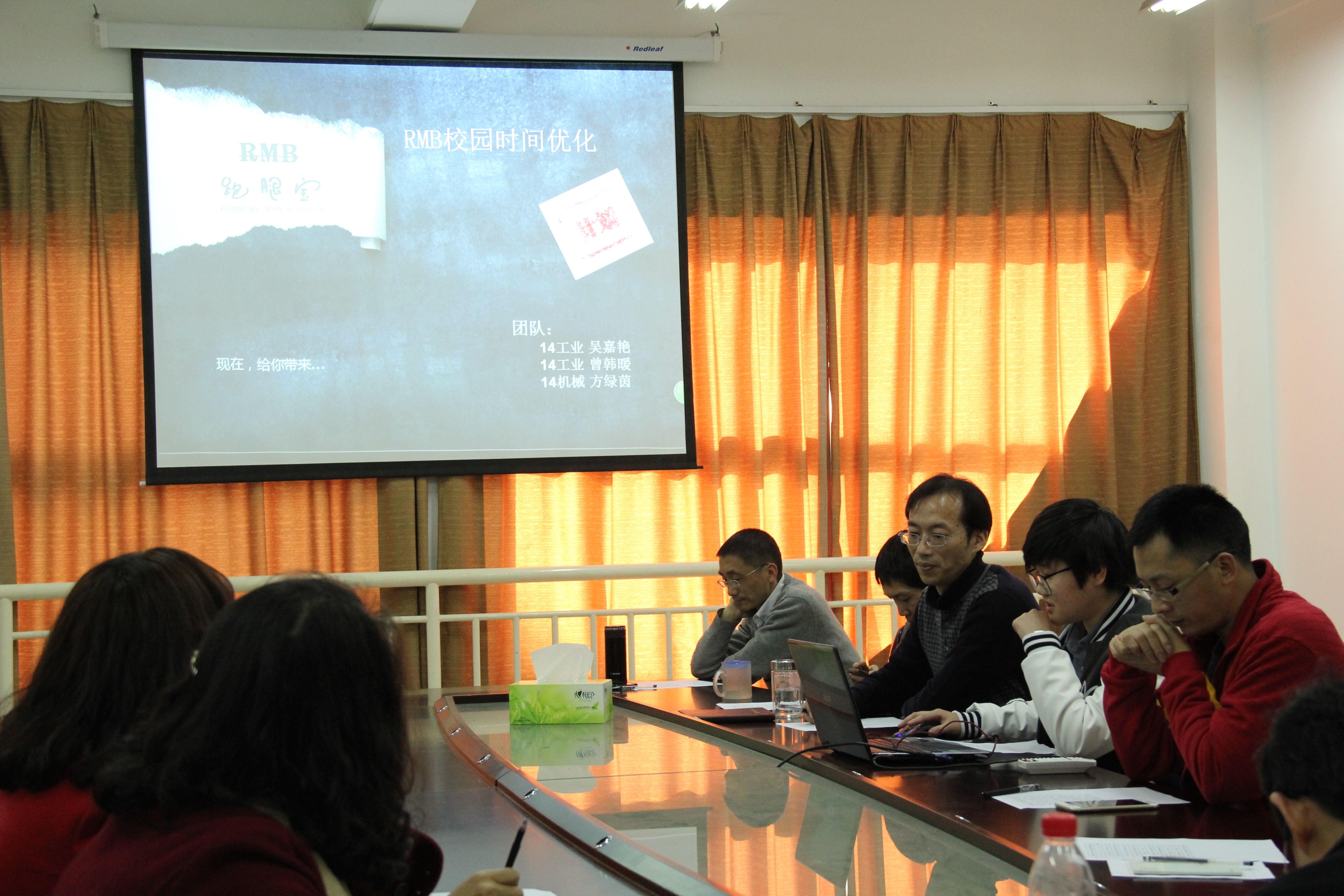 汇报会上,10组团队负责人通过PPT向大家展示了自己的作品。包括“养生蛋糕店”、“RMB校园时间优化公司”、“创绿园”等创业作品,有的理念富有创意,有的在产品或营销手段上进行创新。汇报会期间安排了师生答辩环节,队员们的精彩回答,博得大家的阵阵掌声。本次活动是学校创业大赛的一部分,共吸引了10余个团队参加比赛。