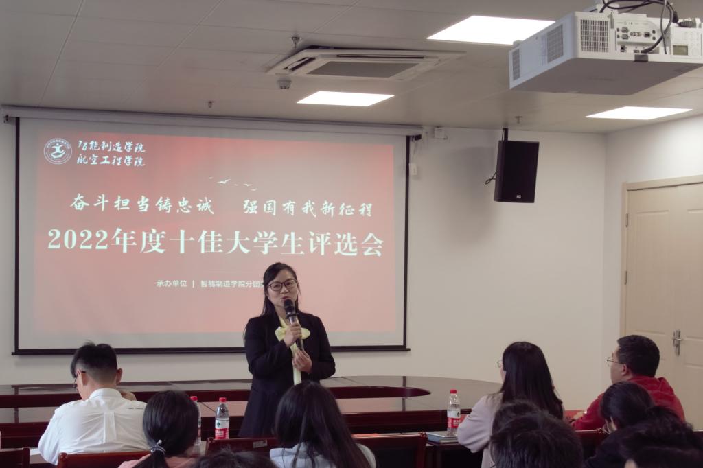 为展示当代大学生的青春风采和拼搏精神,发扬朋辈榜样的引领作用,培育优良学风,4月13日下午,太阳成tyc7111cc(航空工程学院)在航空楼S510开展2022年度“十佳大学生”评选活动。学院党委副书记梅娇、全体辅导员出席并担任评委嘉宾,各班级学生代表参加。