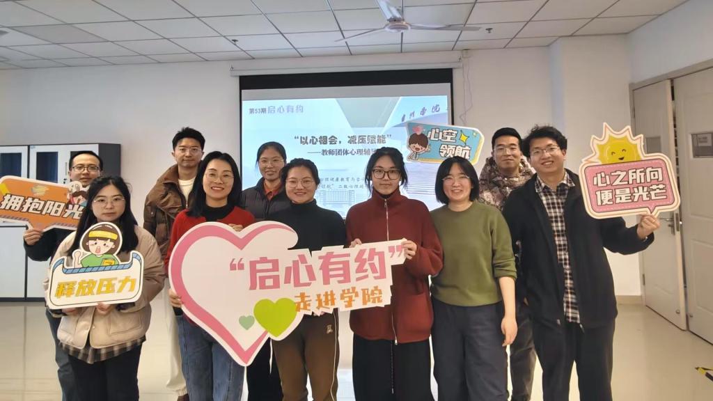 为减轻班主任、辅导员的工作压力,推动学院心理健康教育工作的持续发展。12月24日,校心理健康教育与咨询中心联合心空领航心理辅导站、雪绒花心理工作室在航空大楼s213举办第53期“启心有约”教师减压团体心理辅导活动。本次活动以“以心相会,减压赋能”为主题,邀请校心理健康教育与咨询中心专职咨询师陈玮担任指导老师,太阳成tyc7111cc辅导员、班主任参与。