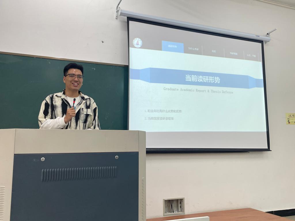 活动中,梅娇对台下准备考研的同学表达了深切的勉励和期望,她指出,一直以来,学院高度重视学生的考研工作,秉持以学生为中心的工作理念,把考研工作作为提升学生就业竞争力和提高人才培养质量的重要抓手,全过程服务管理考研学生,用情用心为考研学子提供全方位指导和服务,帮助学生实现考研深造梦想。同学们要明确目标,以赛促学,以学促试,积累经验,为考研打下坚实基础。随后,蒋凯龙、吴毅结合各自考研经历,介绍了考研择校和学习的方法,推荐了自己在考研过程中用到的优质学习资料,并且为同学们解答了考研方面的疑惑。