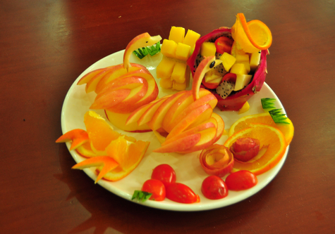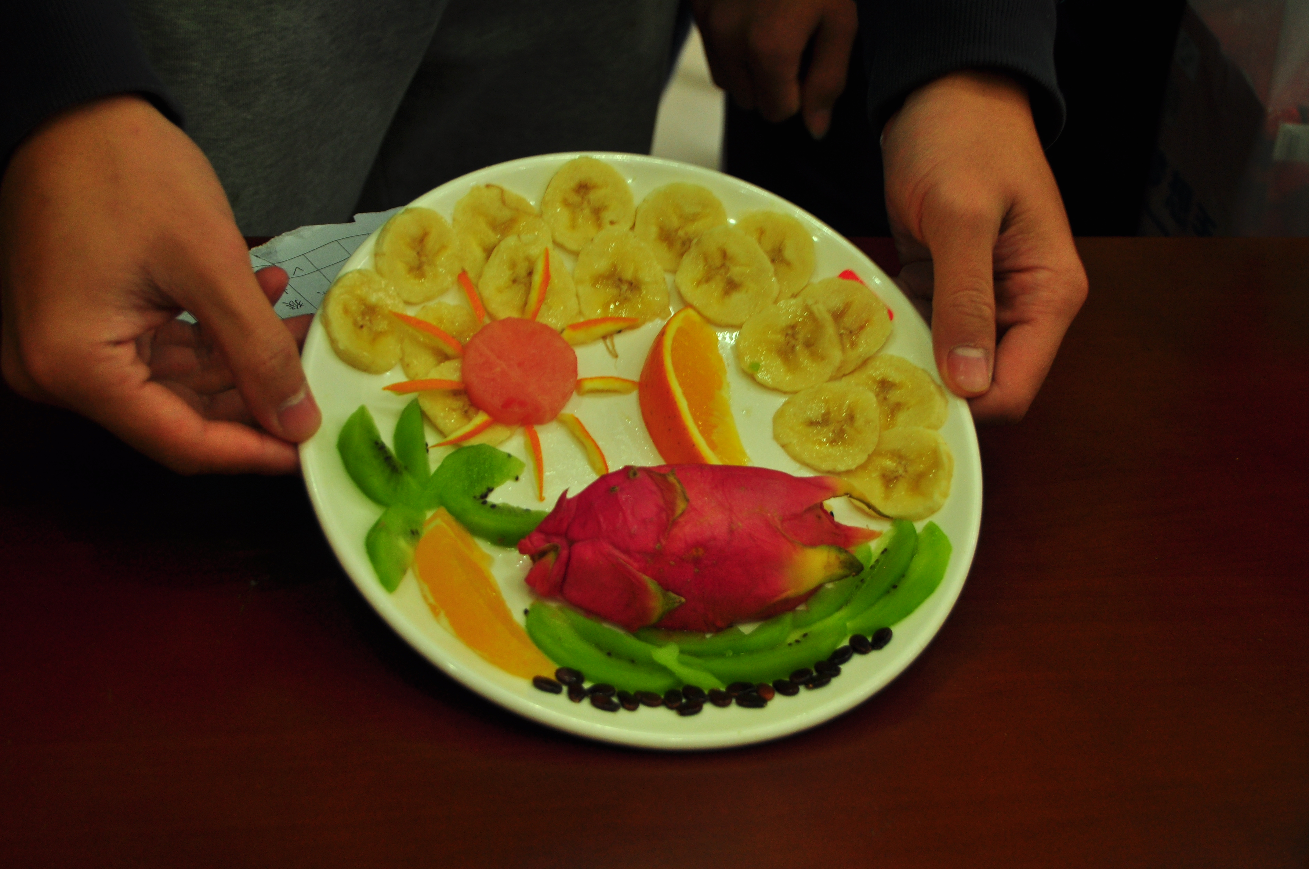 水果拼盘比赛培养同学间团结合作的精神,体现了大学生朝气蓬勃、积极向上的精神状态,对构建温馨寝室、和谐校园具有积极的意义。