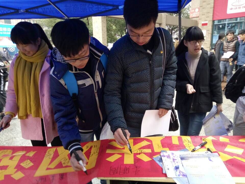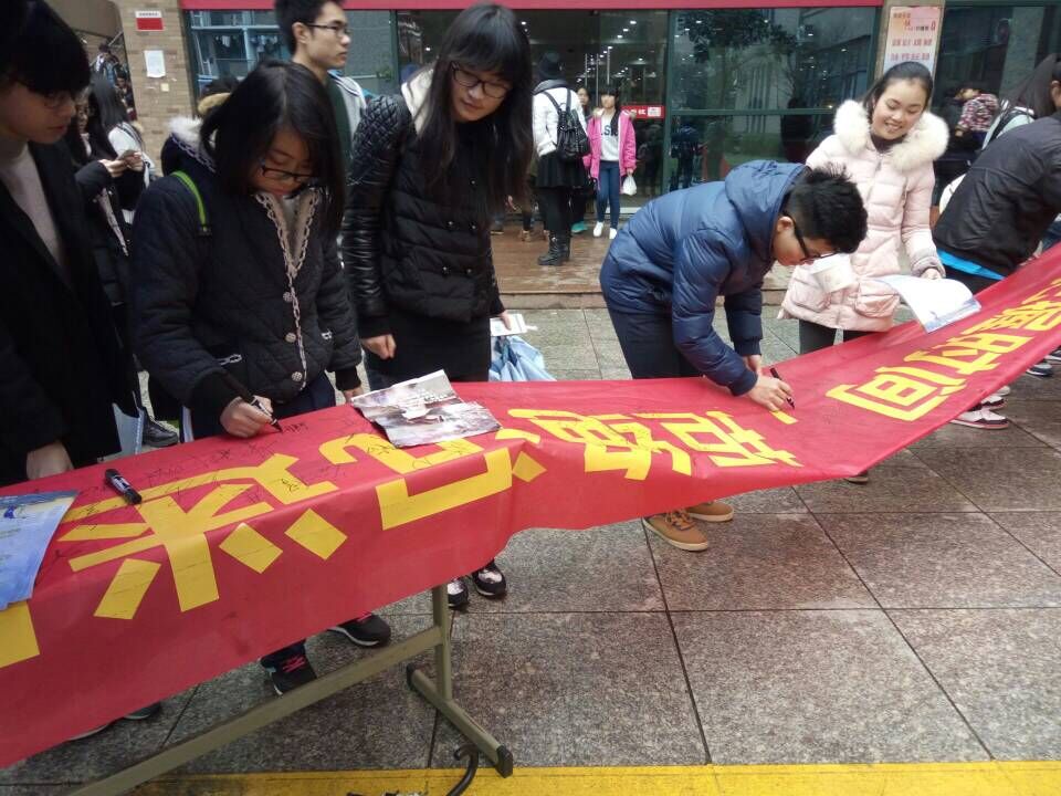 为增强校园文化氛围,提高学生自身精神素质,警醒同学切勿沉迷网络。12月21日中午,机械工程学院公寓自律委员会在食堂门口设点举行千人签名之“拒绝沉迷网络游戏”活动。