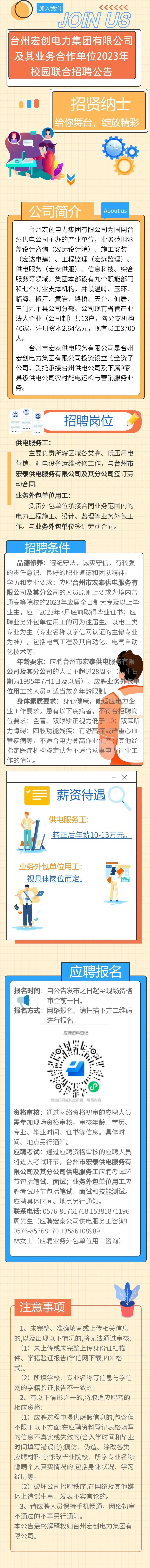 台州宏创电力集团有限公司及其业务合作单位2023年校园联合招聘公告
