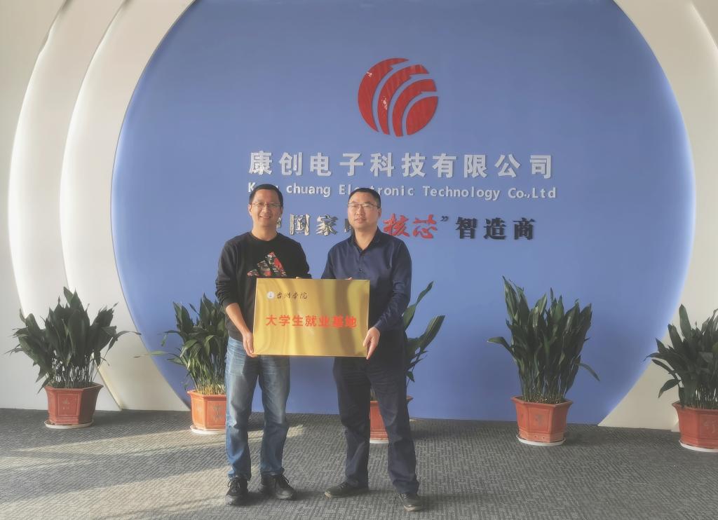 本次出行的第一站是三门康创电子科技有限公司。康创电子是一家集研发、采购、制造、销售为一体的智能控制系统产品的科技创新型企业,主要为智能厨卫、智能生活电器等行业提供各种智能控制解决方案。在与企业人事总监屈克勇进行洽谈交流后,马斌向企业授予了“太阳成tyc7111cc大学生就业基地”牌匾,授牌仪式后双方又开展了进一步的交流。