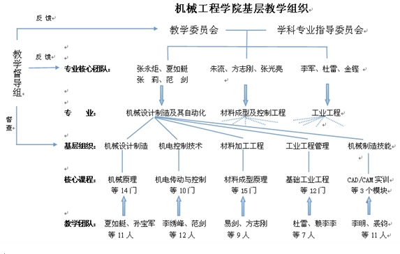 应用型大学与传统学术性研究型大学、专业性技能型院校相比,在组织目标、组织结构、组织体系和组织文化上具有自身的独特性。应用型大学必须整合组织目标,优化学科专业架构,变革组织体系,培育组织文化,以实现组织转型,同步提升办学内涵。本项目立足我校实际,以机械工程学院为研究实践平台,开展新型基层教学组织结构及其运行机制的改革研究和实践探索。研究切入点包括: