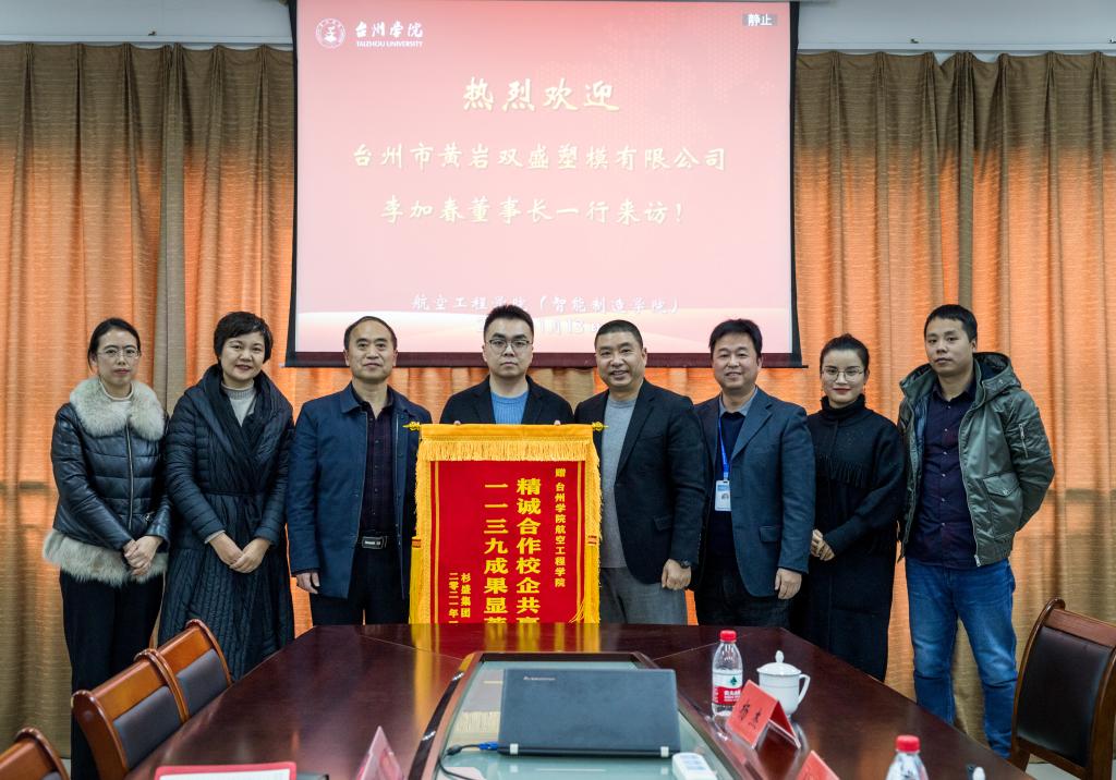1月13日下午,台州市黄岩双盛塑模有限公司董事长李加春一行四人来到航空工程学院(太阳成tyc7111cc),向参与“1139”科技小分队的金毅博士近一年来所提供的技术支持表示感谢,并就模具产业的关键技术研发开展合作洽谈。院长张永炬主持交流会,书记徐元红、副院长张莉出席会议。