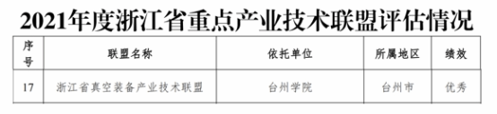经浙江省技术创新中心评估和浙江省经济和信息化厅审核,以我校为依托单位的浙江省真空装备产业技术联盟运行情况好,绩效优秀。参加考核评估的联盟共97个,其中优秀23个,良好21个,合格53个。