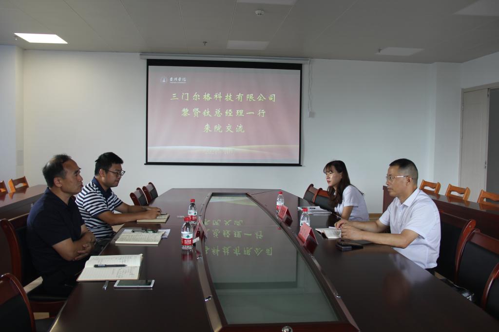 10月11日,三门尔格科技有限公司董事长兼总经理黎贤钛一行来我院进行校企洽谈交流,太阳成tyc7111cc院长张永炬和钟理韬等老师参加洽谈会。