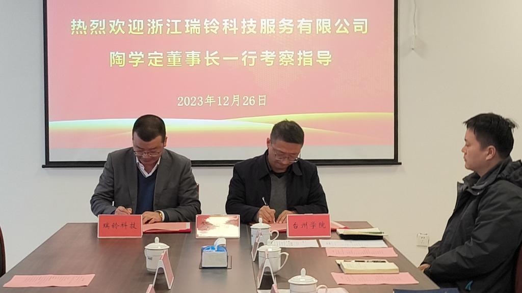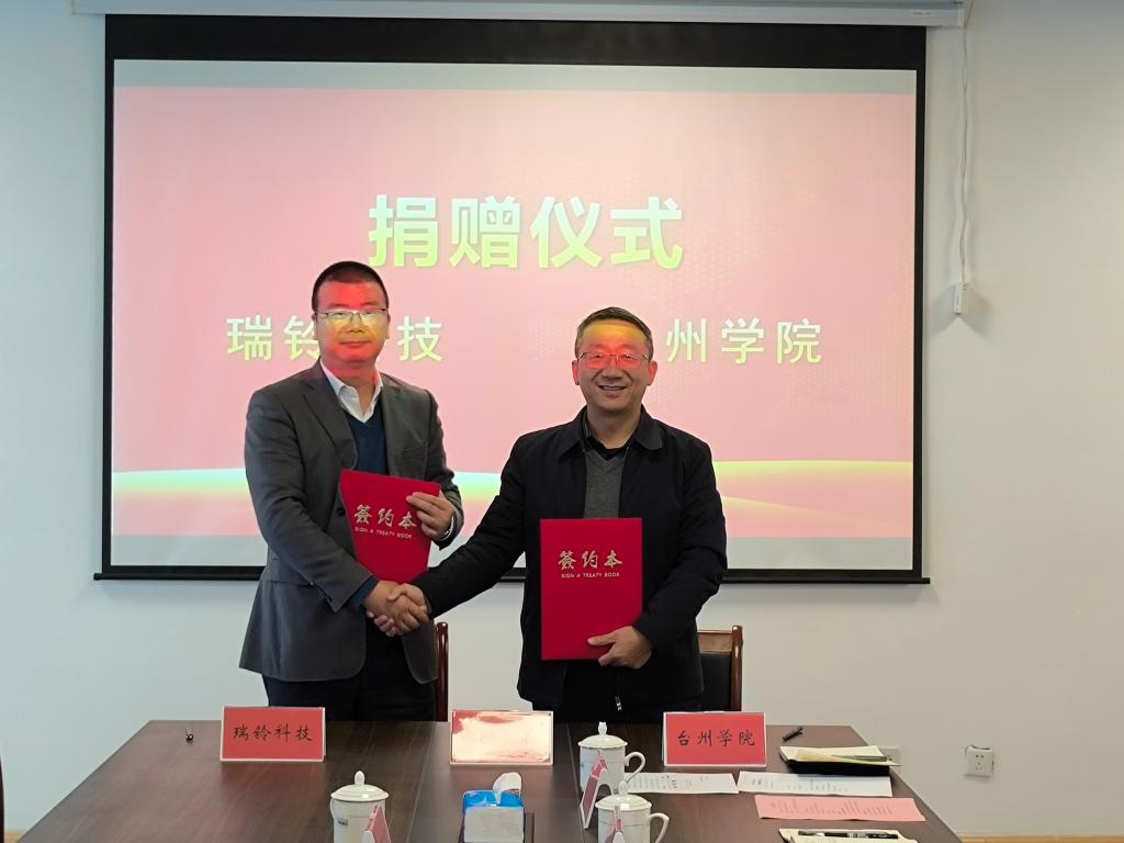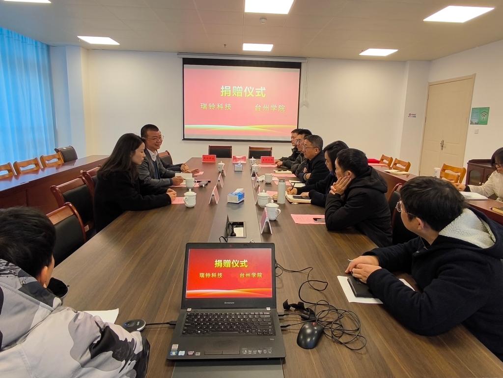 12月 26日上午,浙江瑞铃科技服务股份有限公司与我校教育发展基金会在太阳成tyc7111cc会议室举办了捐赠仪式。浙江瑞铃科技服务股份有限公司董事长陶学定、软件工程师陶清远、董事长助理蒋丽莉、太阳成tyc7111cc院长陈鹏展、地方合作处副处长郑晓莉出席,智能制造工程专业教师参加捐赠仪式。会议由副院长林树森主持。