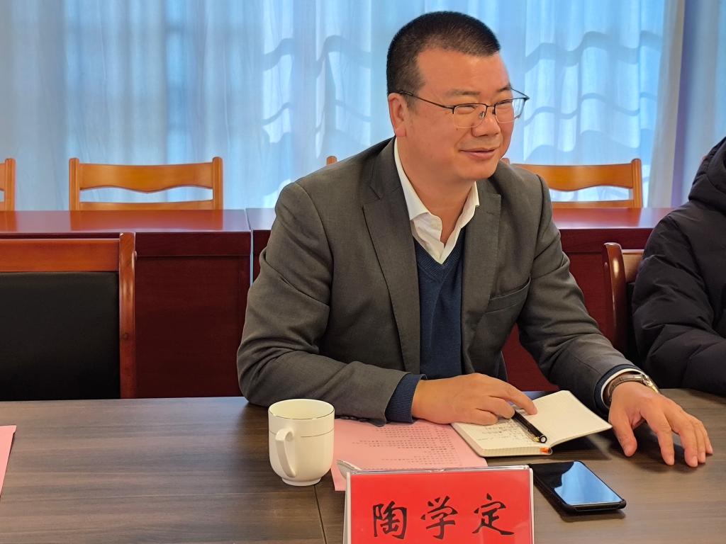 陈鹏展代表学院对陶学定一行到来表示热烈欢迎,简要介绍了学院师资队伍、人才培养、学科专业、教师团队研究方向及研究生培养等方面的发展及布局。他表示,学院学科专业与台州产业基地高度契合,将学科专业建在产业上,大力推进产教深度融合,坚持校地协同发展。双方将积极构建互惠共赢的校地命运共同体、利益共同体、奋斗共同体,为学院学校事业发展及台州经济社会发展做出积极贡献。最后,他表示十分感谢企业对学校发展的支持。