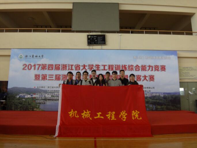 11月3日-5日,2017年第四届浙江省大学生工程训练综合能力竞赛暨第三届浙江创客教育基地联盟创客大赛在浙江农林大学成功举办。在李军副院长的带领下,我校机械工程学院团队共摘得二等奖2项,三等奖1项。其中,裘钧、詹白勺老师指导的孔继昌、张玉熇、朱鑫鑫团队和裘钧、娄珩老师指导的吴昌、方焕、李沈航组获二等奖,金飞翔、王立标老师指导的田诚鑫、廖朝彪、蔡如洋团队获三等奖。