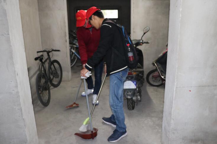 志愿者们先将车库中的自行车、电动车进行分类并擦洗干净、摆放整齐,将车库地面打扫干净。对一些陈旧车辆进行修理和翻新,并清理报废车辆。尽管天气寒冷,同学们的情绪却十分高涨,在大家的共同努力下,车库焕然一新。