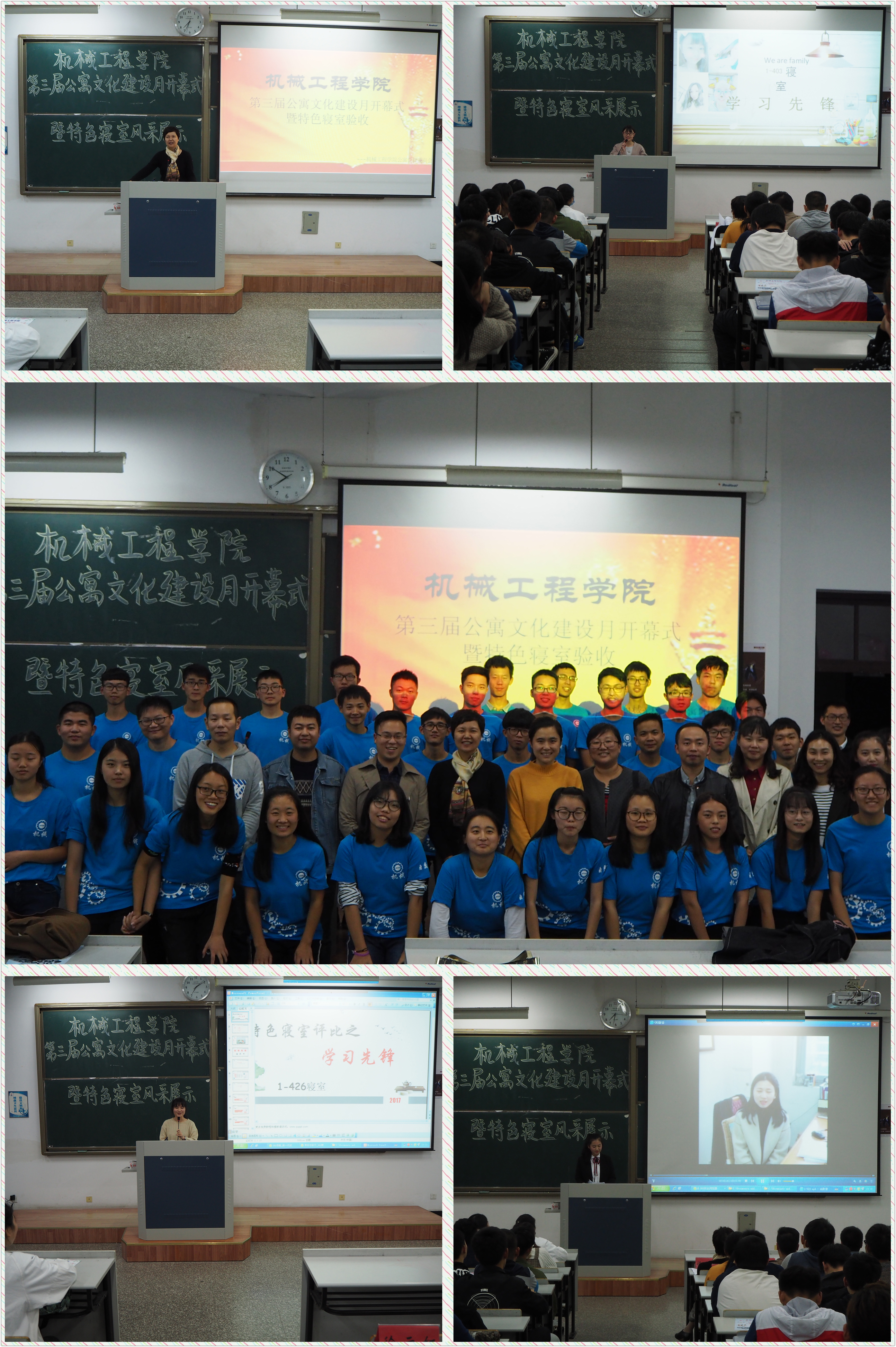 11月16日晚,机械工程学院第三届公寓文化建设月开幕式暨特色寝室风采展示活动在椒江校区2-205教室举行,学院党总支副书记徐元红,各年级辅导员及各班班主任出席本次活动。
