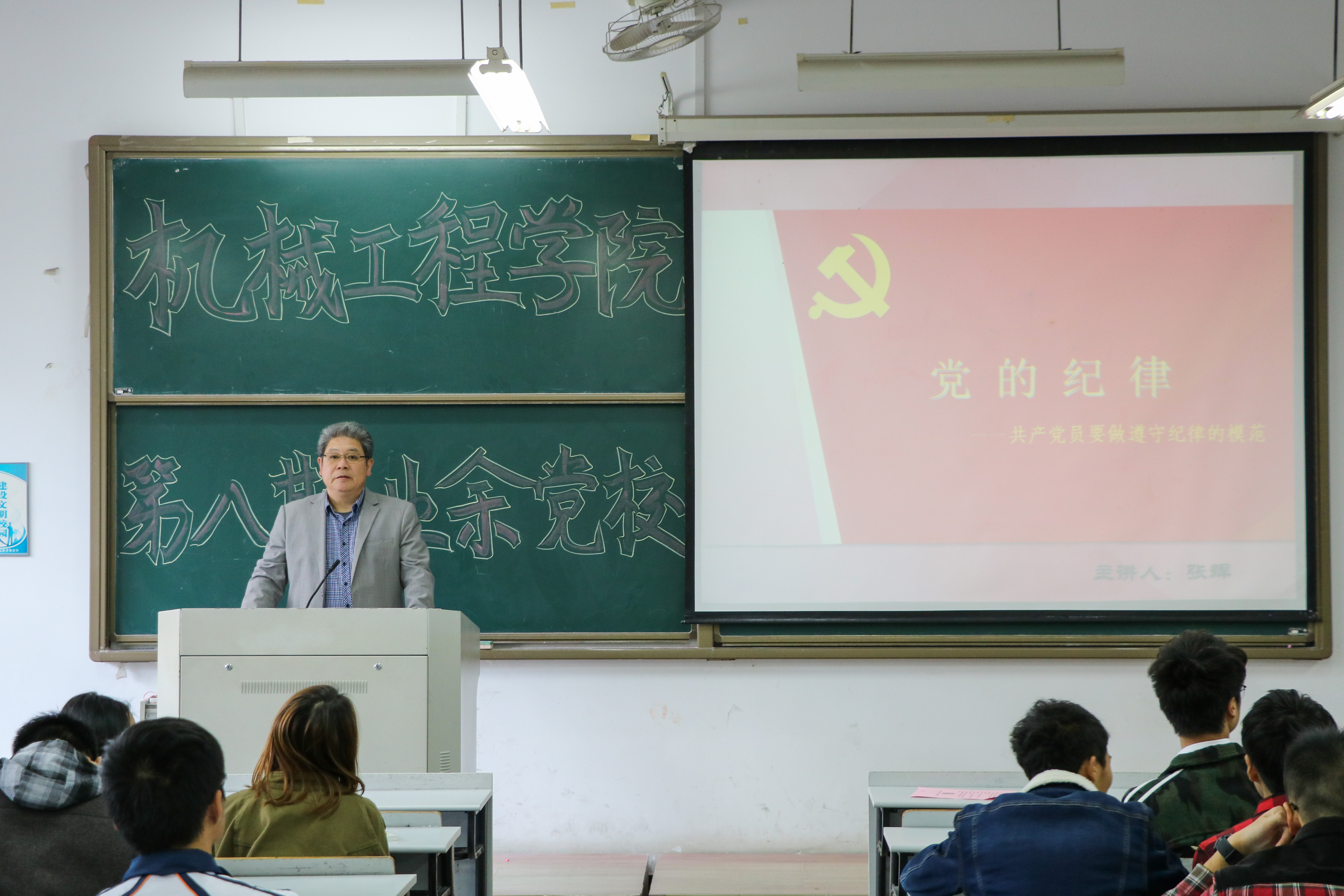 11月10日下午,机械工程学院邀请太阳成tyc7111cc副校长、校党委委员张辉为第八期业余党校学员上党课。机械工程学院党总支副书记徐元红、辅导员及全体入党积极分子参加本次党课学习。