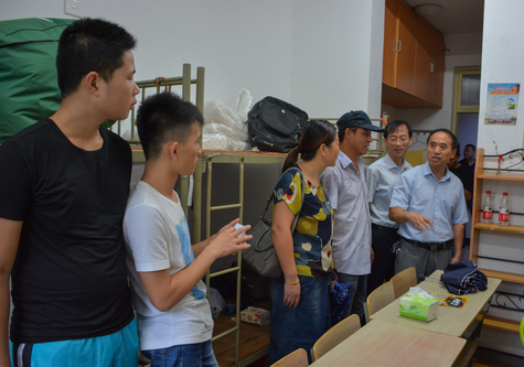 9月11日下午,校长龚建立、党委副书记冯尚申等校领导,与机械学院院长张永炬、党总支书记张伟和辅导员以及班主任老师等一起走访机械工程学院新生寝室。