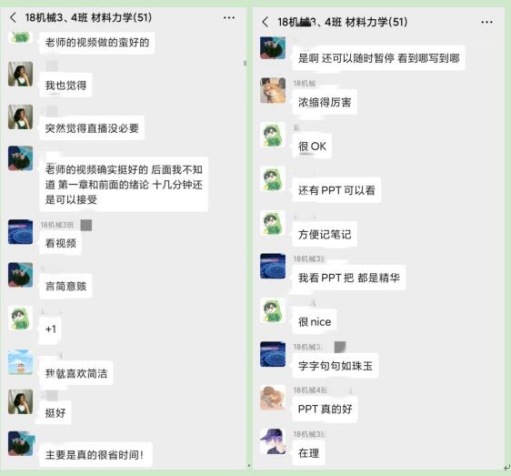 接到“停课不停学”通知后,我院学习部和各班班委积极联系并协助教师根据课程的要求组织同学们提前在电脑、手机等在线学习设备上下载网络教学软件,完成账号注册,同学们快速熟悉掌握网络教学平台的使用,及时加入课程相应的微信群、QQ群等学习群,做好课前预习工作。同学们兴趣浓厚、热情高涨,积极配合教师教学组织,参与在线上课堂签到、问卷调查、互动讨论、在线测试等教学活动,上课过程中,同学们精神饱满,学生真实感受到与老师之间线上的“一对一”教学,与老师和同学间的线上互动比传统的课堂教学更积极,更踊跃,思维更活跃。同学们纷纷表示,线上学习资源十分丰富,网络上课方式新颖,说明学生很快适应了这种学习模式,而且对这种教学方式有更多期待。