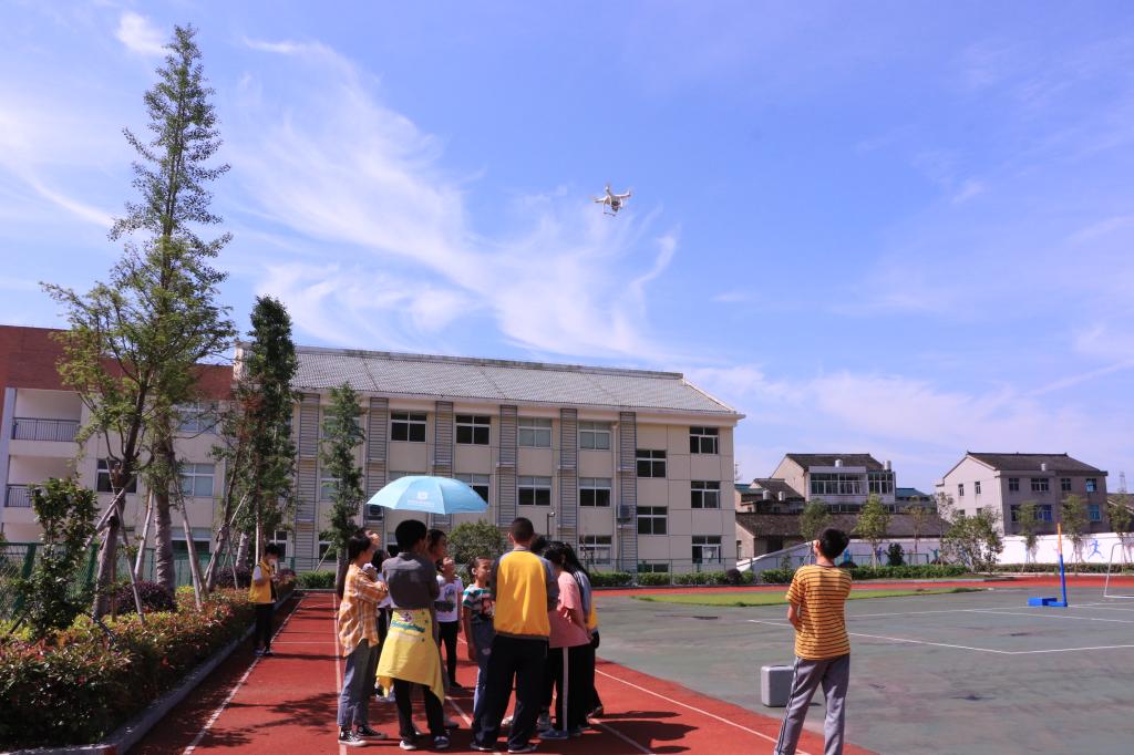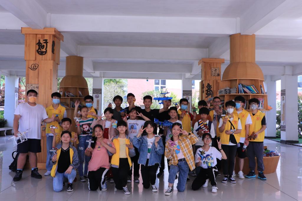 5月31日,活动当天,志愿者向孩子们展示无人机表演,并教他们亲自操作无人机飞行,满足了孩子们对无人机的好奇心。同一片蓝天同一个梦,在每个小朋友心中播下了一颗航天飞行的种子。耐心解答他们感兴趣的问题,并将事先制作好的航模作为礼物送给孩子们,志愿者唐柳东说:“希望孩子们都能健康成长,找到自己的喜欢及热爱的事情”。