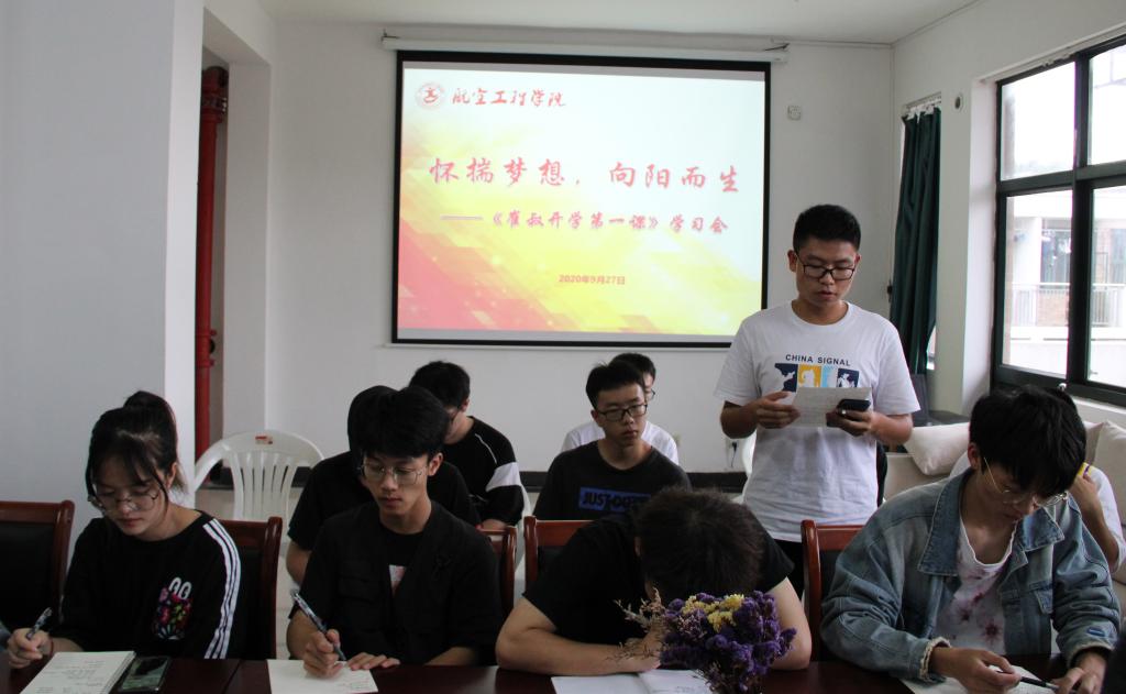 9月28日,航空工程学院在4号寝室楼617党员活动室组织学习校党委书记崔凤军“开学第一课”。学院党总支副书记梅娇、辅导员、全体学生干部参加。