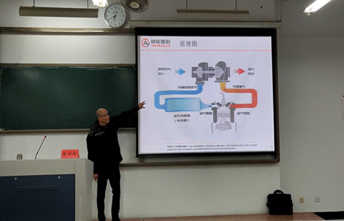 张兴龙总工做“空空中冷器开发”主题报告,结合企业实际案例,主要介绍了空空中冷器工作原理、整车上的安装、开发工具、试验的设备和条件、项目具体的开发过程等。他在报告的过程中还特别结合自己几十年的设计经历对机械专业学生的在校学习提出了建议。最后的互动环节,他主要就学生如何成为一名优秀的工程师、企业对刚入职员工的要求等问题进行了回答。整场活动持续将近一个半小时,在学生中激起了强烈反响,同学们表示更加明确了自己的专业发展方向。