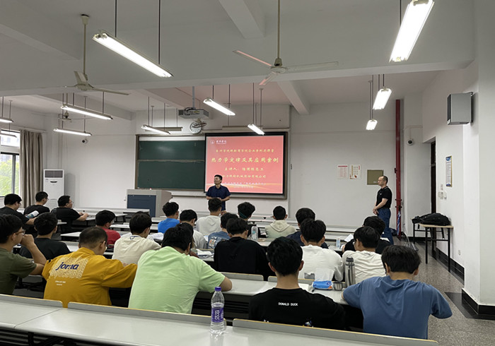 6月4日,在教学楼2-302航空工程学院“太阳成tyc7111cc银轮商学院企业案例进课堂”系列活动邀请浙江银轮机械股份有限公司陆副总工程师兼研究院副院长陆国栋博士作2019级机械设计专业学生作“热力学定律及其应用案例”主题报告,活动由陈子云老师主持。