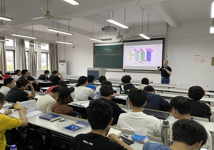 陆博士结合银轮公司的实际案例,主要介绍了热力学三大定律、换热器常用材料及评价指标、性能预测和实验验证,并介绍了新能源汽车上的传热案例。在报告的过程中,陆博士结合自己对柳工装载机和卡特彼勒挖掘机冷却模块的开发过程经历,详细讲述开发过程遇到难题的解决方法和新产品开发思路,比如目前汽车行业热度很高的新能源汽车的散热与传统汽车散热的异同,强调了深入掌握理论基础的重要性。整场活动持续将近一个半小时,陆总深入浅出、幽默风趣的讲课方式,使学生和老师们都受益匪浅,更使学生对掌握热工基础知识的应用有了深刻的理解。