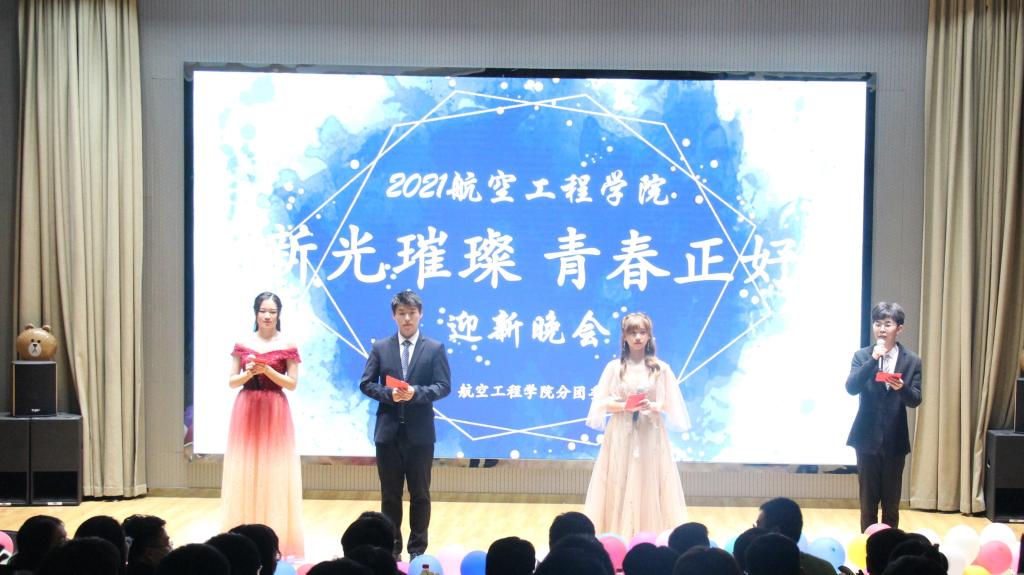 灯开,昏暗舞台顿时被白灯点亮,四位主持人李眉怡、陈冠宇、吴琪和徐子航站在台上,笑脸盈盈地翻开了晚会序章。掌声如雷,荧光挥动,有劲爆火热的女团舞,有笑声不断却引人深思的小品,有淡然忧伤的歌曲,有酷炫朋克风的街舞,有催人泪下的剧场,有梦幻奇妙的集体舞,也有红袖飘飘的一人独舞。其中还穿插着三轮激动人心的抽奖环节,大幕荧屏五颜六色的id头像飘过,场下笑声不绝,每个幸运观众上台发言,心满意足地拿到了奖品。最后晚会在四位主持人的结束语中推向了高潮。新光璀璨,青春正好,航空工程学院2021年迎新晚会至此圆满结束。
