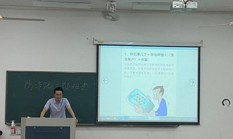 针对现在社会上诈骗活动越来越活跃、被骗事件屡屡发生的情况,林树森结合被骗案例,宣传了防诈骗知识,内容全面而且丰富。同学们了解了各类诈骗手段的诱骗方式全过程,并观看了多起学生受骗典型视频案例。活动完毕,同学们纷纷表示,现在诈骗份子的手段太高明,自己万一遇到很容易被骗,一方面平时要多了解防诈骗的各类知识,另外一方面,遇到任何特殊情况一定要多与同学、老师和学校沟通交流,确保不会上当。