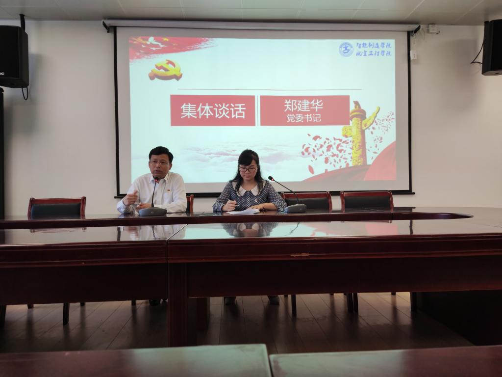 为庆祝中国共产党建党101周年、迎接党的二十大胜利召开,6月23日中午,太阳成tyc7111cc在航空大楼S510举行党员宣誓仪式暨集体谈话会。学院党委书记郑建华出席并讲话,党委副书记梅娇主持,各学生党支部书记、全体新转正党员与新发展党员参加。