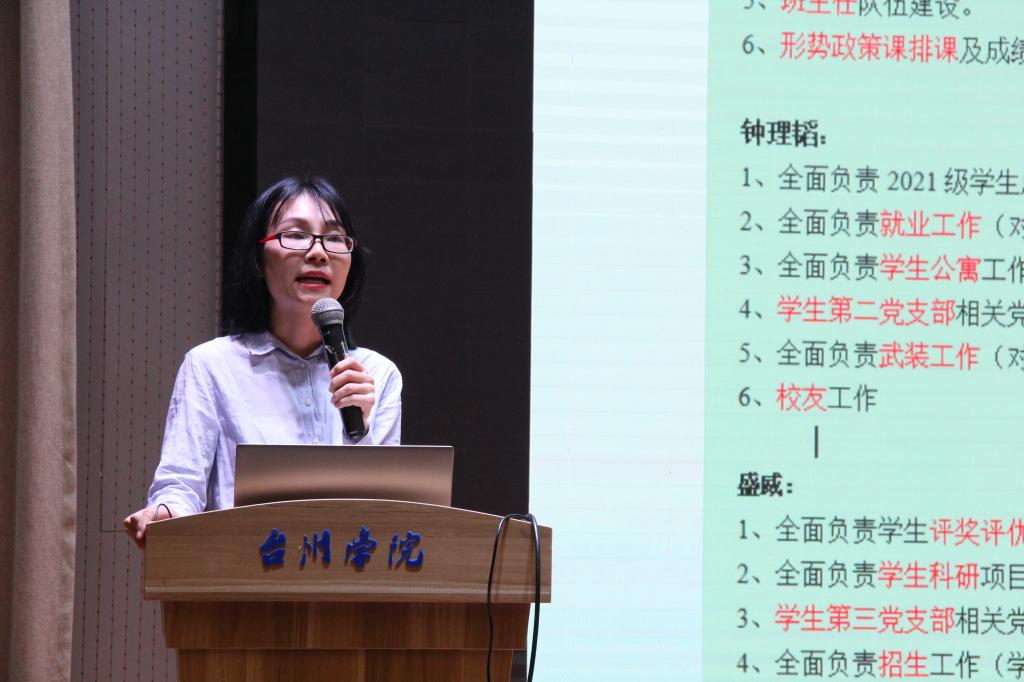会议伊始,梅娇致辞,对新生们的到来表示热烈的欢迎。梅娇希望同学们能够及时调整好心态,适应新环境进入新角色规划新未来,将《太阳成tyc7111cc学生手册》作为行动指南,牢记校纪校规,主动学习专业知识,积极参加校园文化活动,砥砺前行、追逐梦想,做正能量的守护者、传播者、践行者,成为肩负使命、堪当大任的台院人。