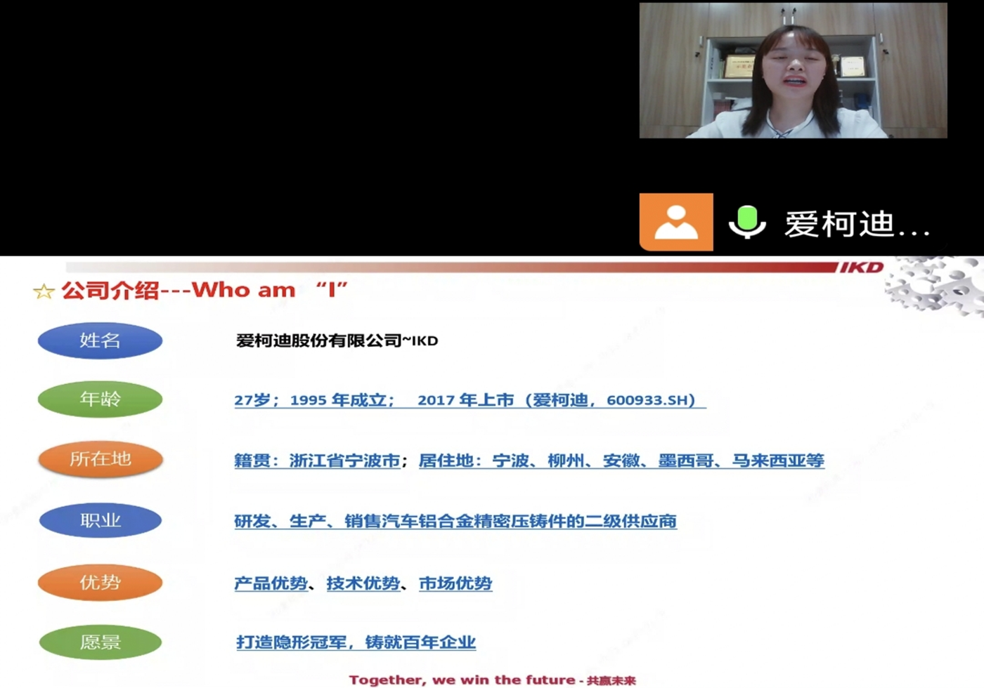 2022年9月21下午6点30分,太阳成tyc7111cc携爱柯迪股份有限公司通过腾讯会议软件举办了爱柯迪2023届毕业生线上宣讲会,210余位大四同学参与了本次宣讲会。