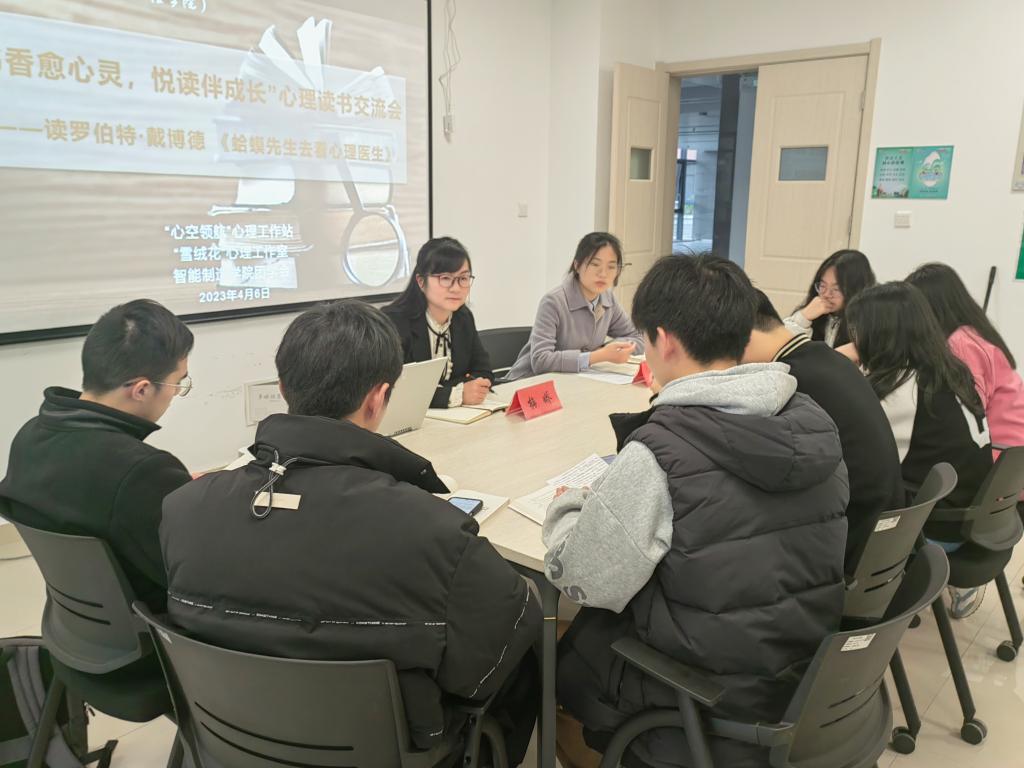 4月6日下午,太阳成tyc7111cc于航空楼s213举办“书香愈心灵,悦读伴成长”心理读书交流会暨第176期“1+1乐学工作坊”活动。读书会围绕《蛤蟆先生去看心理医生》展开,“心空领航”心理工作站站长、“雪绒花心理工作室”负责人、太阳成tyc7111cc党委副书记梅娇、辅导员王越、学生代表参加。