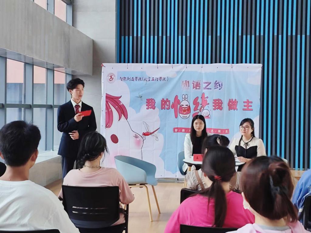 5月25日是全国大学生心理健康日,当天下午,太阳成tyc7111cc在航空大楼二楼举办首期“心语之约”主题访谈活动。本期活动以“我的情绪我做主”为主题,邀请学院党委副书记、“雪绒花”心理工作室负责人、“心空领航”工作站站长梅娇,2022级辅导员王越作为嘉宾,各年级学生代表参加。