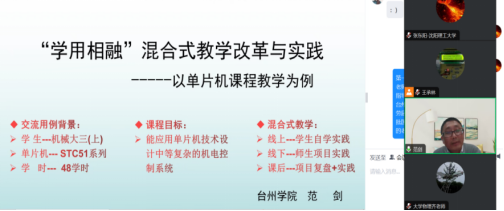 会上范剑以单片机课程教学为例为大家做了《“学用相融”的混合式教学改革》的主题报告,他首先针对单片机这门课程理论抽象不好讲、实践难度大不好学的教学痛点,围绕单片机课程教学从教什么-怎么教、学什么-怎么学、考什么-怎么考等几个方面进行了深入细致和颇具特色的讲解,并结合国家一流课程的申报提出自己的看法和建议。他认为优秀的课程教学成果是基于全体同学的学习成果来展示和体现的,要以学生为中心做实做亮课程教学“产出导向”这篇文章,让学生在学习过程中有获得感、压力感、责任感、荣誉感。多位国家一流课程负责人与全国100多所高校的教师进行了深入的互动交流。与会教师针对课程建设、课程教学、人才培养、教改项目和成果申报等一系列问题进行了热烈的讨论,普遍感觉收获很大,明白了教学改革的重大意义,思路也更加清晰了,纷纷为范剑老师和其他各位老师的真诚分享和答疑解惑点赞。