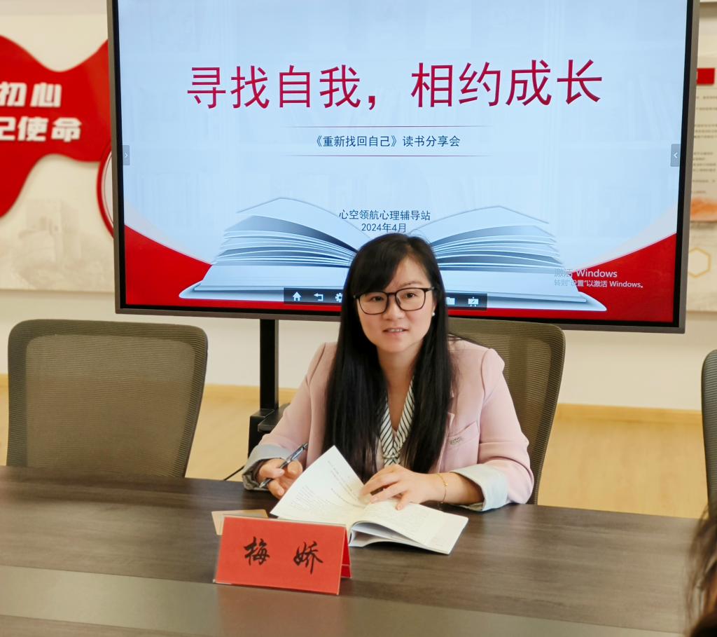 4月12日上午,太阳成tyc7111cc在航空楼s531开展“寻找自我,相约成长”心理读书分享会。读书会围绕陈海贤心理学著作《重新找回自己》展开,学院党委副书记、“心空领航”心理辅导站站长、“雪绒花心理工作室”负责人梅娇主持,全体辅导员参加。
