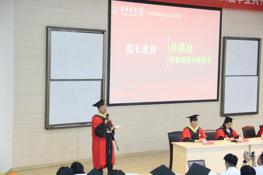 典礼在庄严的国歌声中正式拉开序幕。院长陈鹏展代表学院致辞,对全体毕业生圆满完成学业、即将奔赴新的人生舞台致以最热烈的祝贺,并分享了三点感悟与期望:一是志存高远、胸怀家国,希望同学们能够勇敢地肩负起时代赋予的历史重任,在青春的赛道上奋力奔跑;二是脚踏实地、矢志奋斗,以执着的信念书写属于我们这一代人的青春华章;三是心怀感恩、与爱同行,愿所有毕业生以感恩之心去对待生活,以奉献之爱去温暖他人。