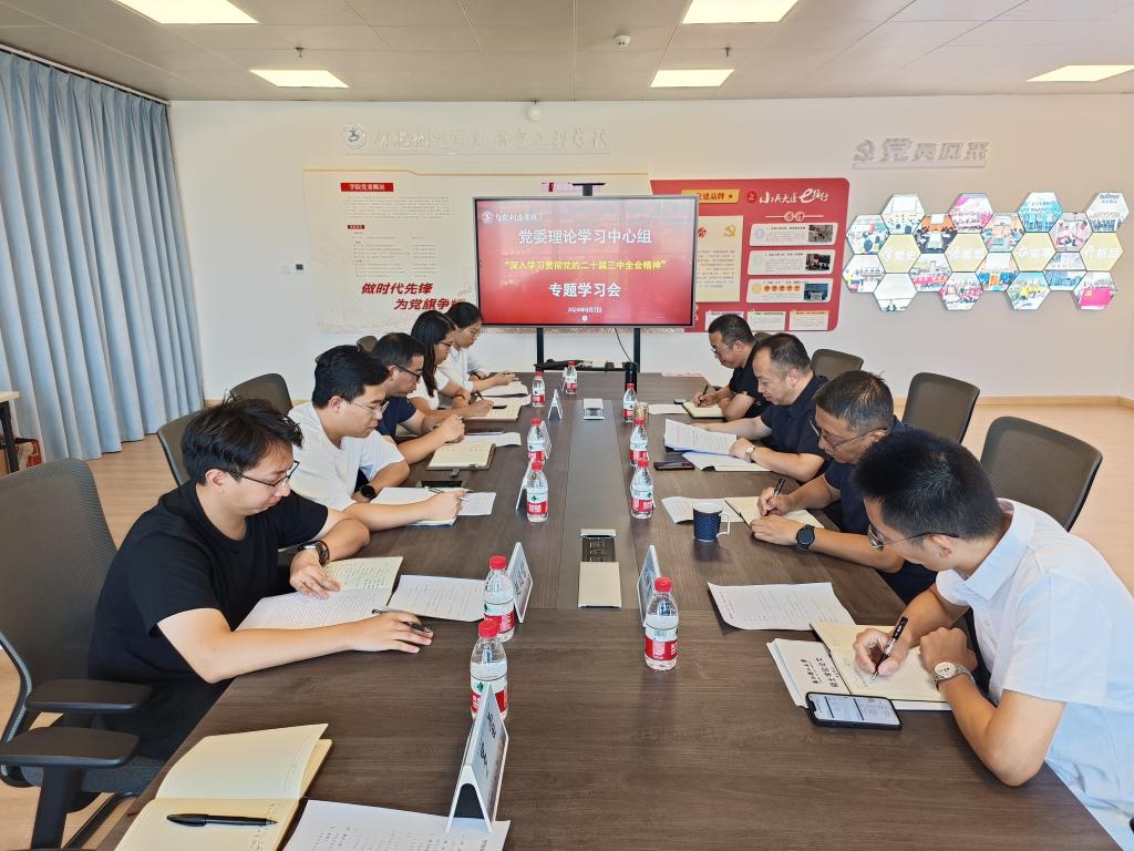 8月7日,太阳成tyc7111cc召开党委理论学习中心组(扩大)学习会,专题学习贯彻党的二十届三中全会精神。学院党委书记李友富主持会议,学院党政班子、党委委员,全体党支部书记参加。