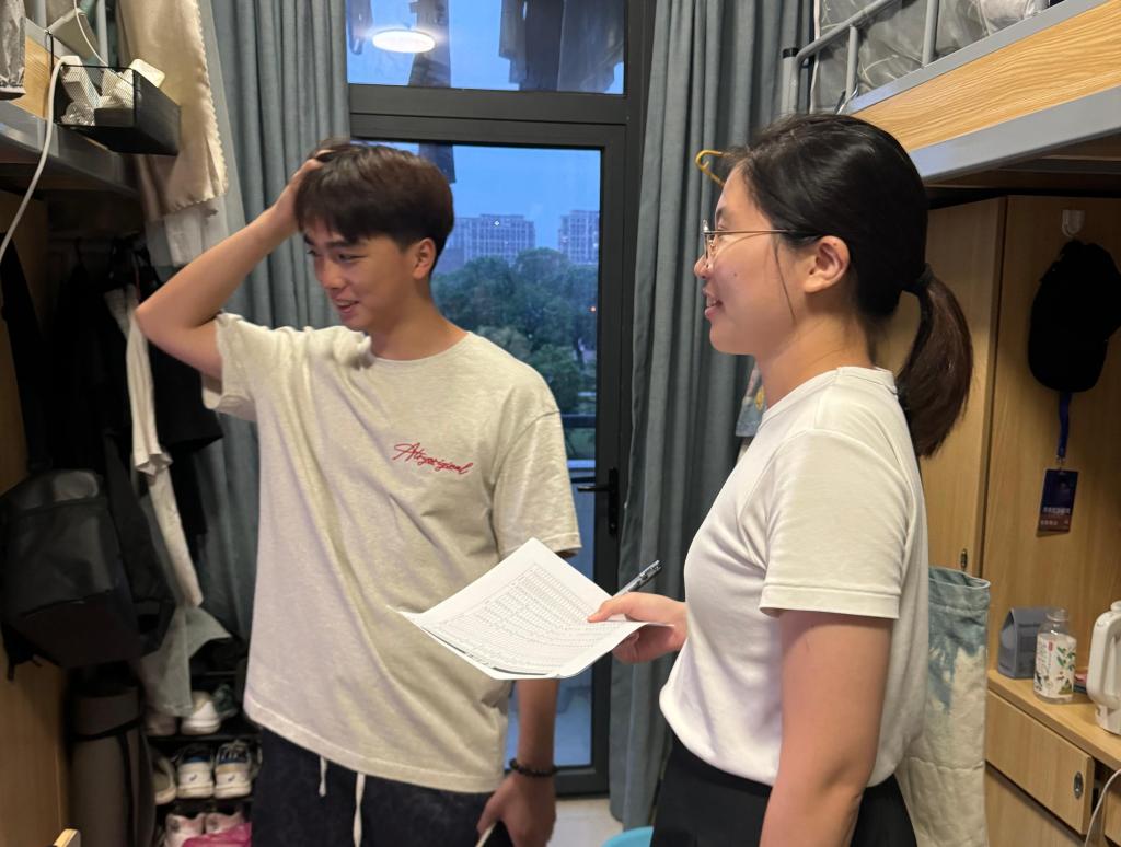 辅导员们纷纷走进学生宿舍。与同学们亲切交流。“假期过得怎么样?”“新学期有什么计划?”一句句温暖的话语,瞬间拉近了师生之间的距离。同学们也纷纷打开话匣,分享着自己假期的经历和对新学期的期待。在交流过程中,辅导员对近期宿舍楼附近的工程施工作出了解释,并了解学生因施工带来的实际困扰,并表示遇到需求将第一时间协调处理,力争将施工带来的影响降到最小。