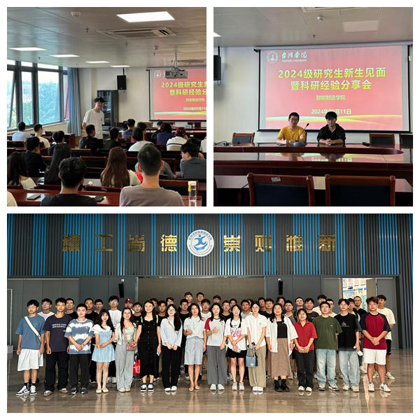 会前,2024级研究生全体同学进行了简单的自我介绍,相互了解认识并全班合影;会后,2023级研究生代表王佳柯、康振佳同学分享了研一学习方法和科研经验。
