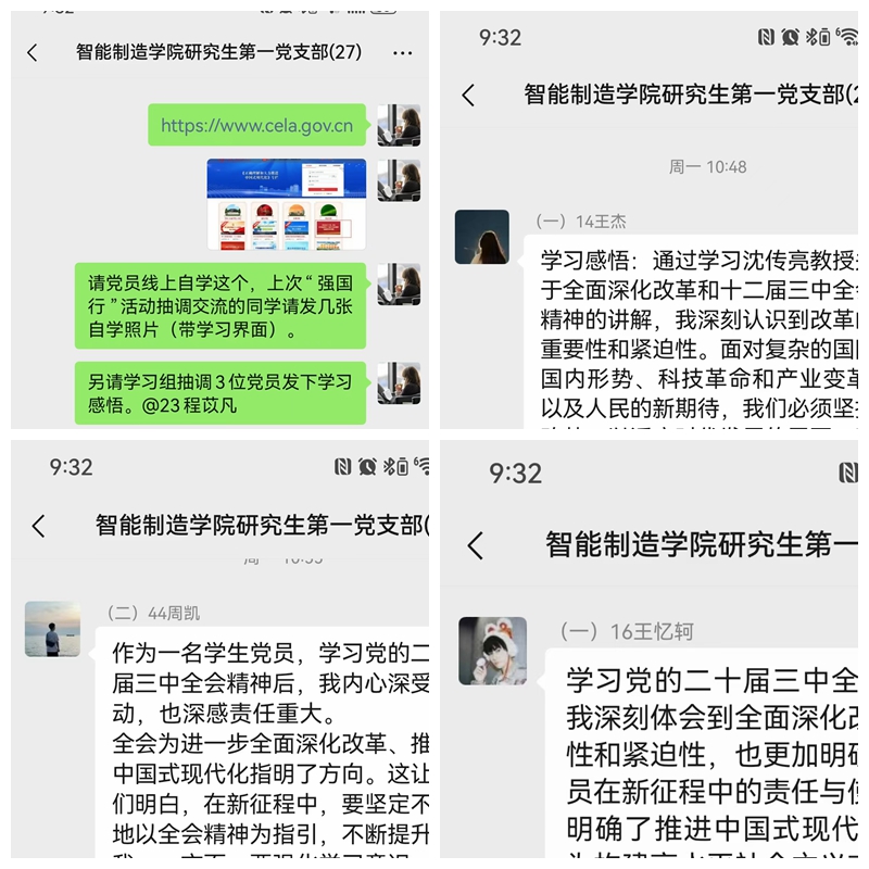 学习会上全体党员集中观看了《深入学习贯彻习近平总书记关于全面深化改革的一系列新思想、新观点、新论断和党的二十届三中全会精神》的专题视频。通过视频的学习,党员们认识到改革的重要性和紧迫性,对习近平总书记关于全面深化改革的新思想、新观点、新论断有了更深刻的认识,对改革的“三个面对”“六个必然要求”以及“四个迫切需要”有了更深刻的理解。改革不仅是国家发展的驱动力,也是实现人民对美好生活的向往的必经之路。作为新时代的研究生党员,将发挥示范引领作用,积极投身于改革的实践中,为推动国家和社会的发展贡献自己的力量。